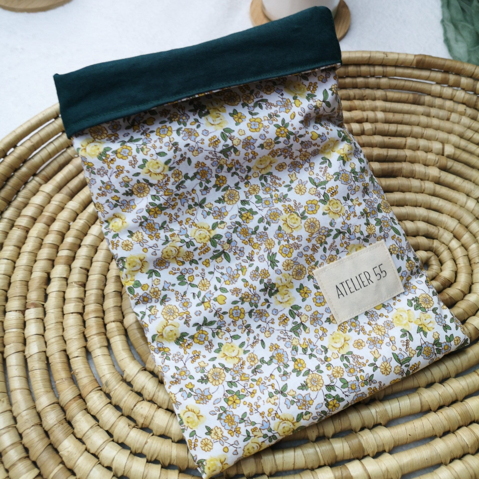 Fini les coins cornées et les tranches sales. Notre pochette doublée en ouatine offre une protection douce et sécurisée . Fermée par un bouton et un élastique, elle empêche le livre de glisser.