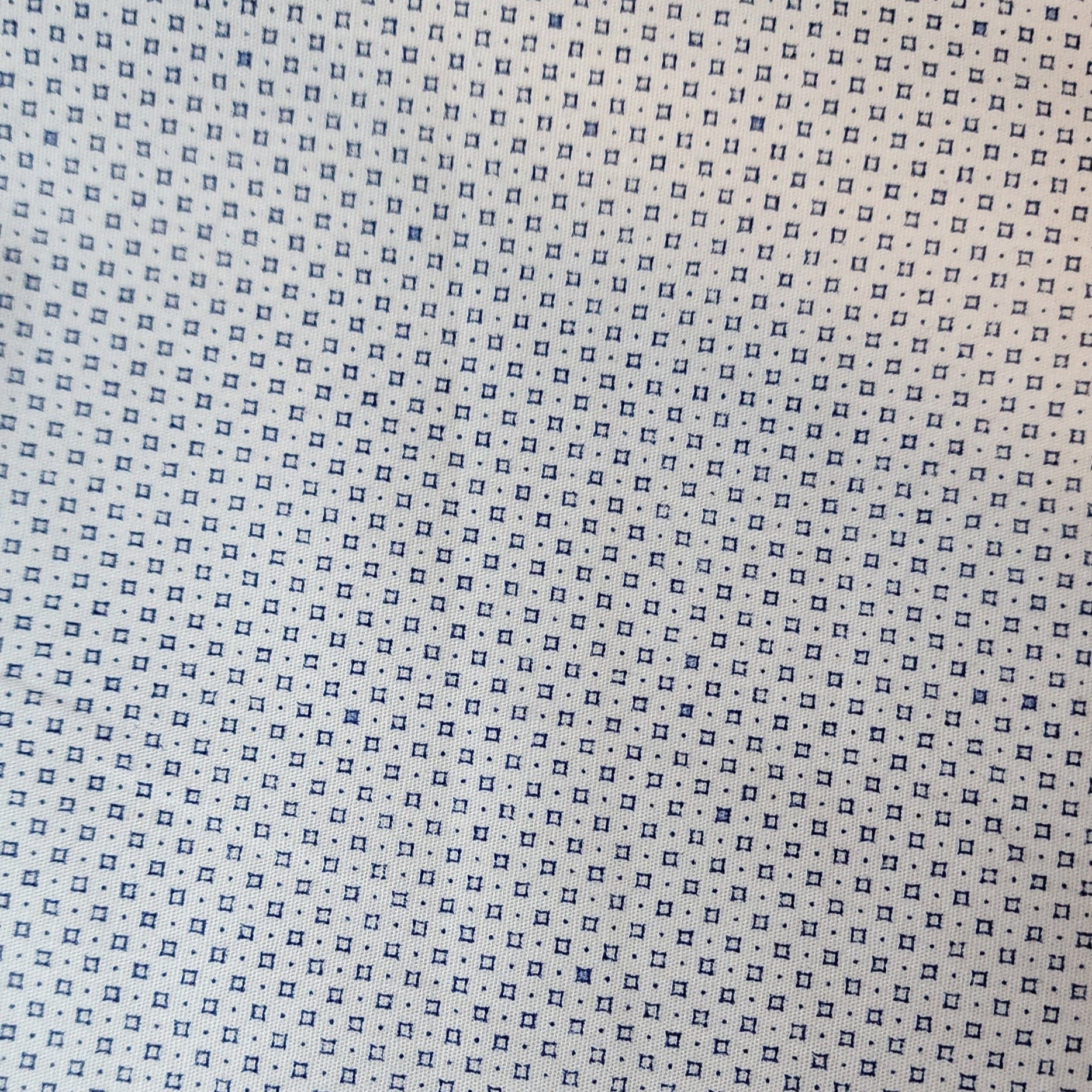 Ce tissu est vraiment charmant, les petits carrés bleus avec un point central donnent une allure géométrique très soignée, presque comme un motif pixelisé.