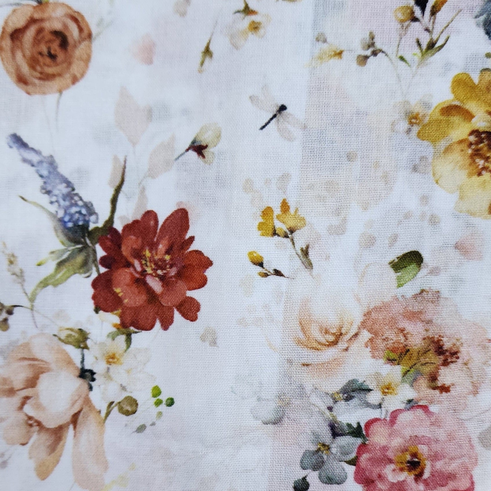 Un tissu poétique et détaillé, mêlant fleurs multicolores et feuillages. Sur fond clair, il évoque la nature dans toute sa délicatesse.