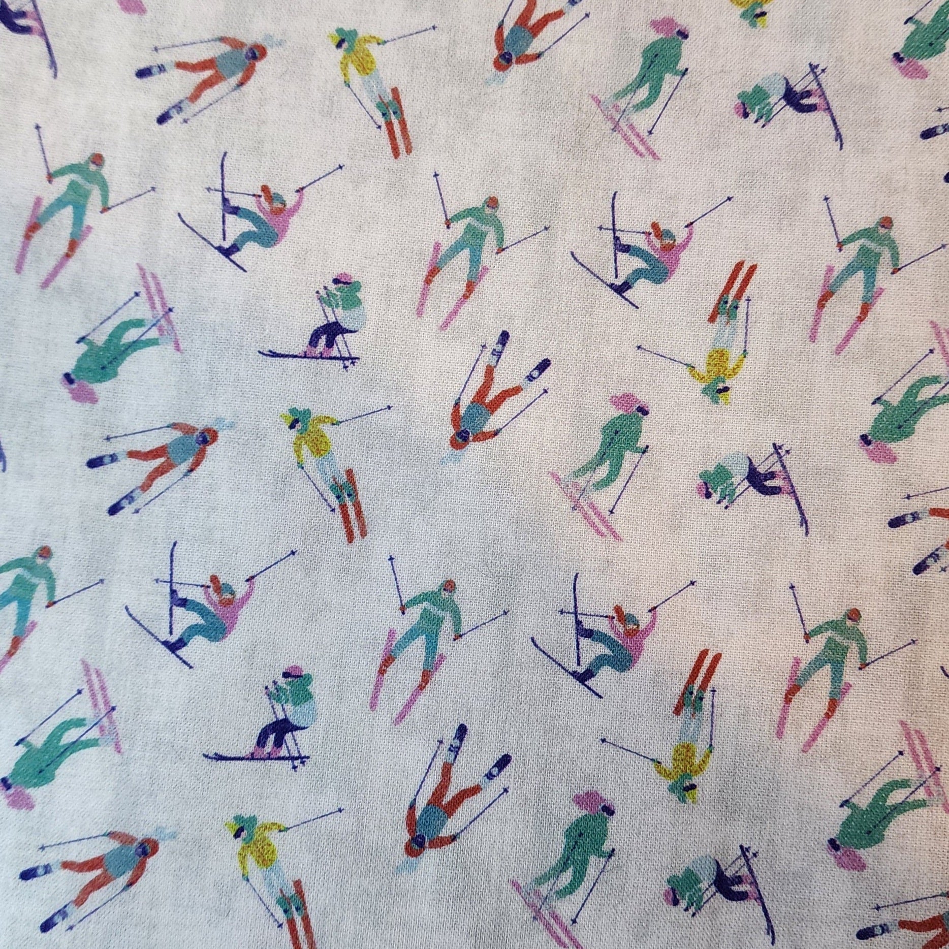 Ce tissu en coton "Skieur" capture toute l’énergie des pistes enneigées avec ses illustrations ludiques de skieurs en pleine action. Le style graphique est moderne et amusant, idéal pour des créations textiles liées à l’univers du sport d’hiver : trousses, sacs, accessoires pour enfants,...